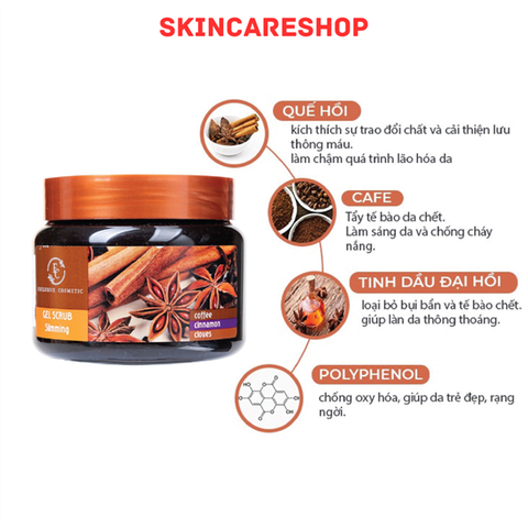 Tẩy da chết body thiên nhiên chiết xuất từ quế hồi và cafe 2 trong 1 có tác dụng tẩy da chết, cafe giúp da trắng sáng hơn, quế hồi giúp lấy lại độ đàn hồi săn chắc cho da. Bôi lên da nhìn đen đen bẩn bẩn tí thôi cơ mà xả sạch nước đi chị em sẽ nhận thấy da mình mềm mịn hơn và trắng sáng hơn hẳn đó.