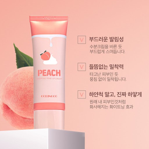 Kem dưỡng trắng da Coringco Peach Whipping Tone Up Cream là sản phẩm kem dưỡng trắng da cao cấp hiện đang thống trị trên kệ hàng skin-care của các showroom mỹ phẩm Hàn Quốc cao cấp và không thể thiếu trong tips chăm sóc da của các hotgirl.