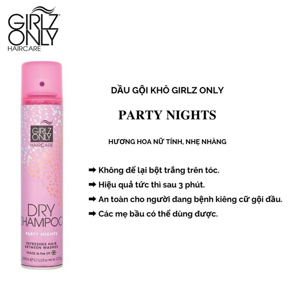 Ngoài việc là một sản phẩm chăm sóc và vệ sinh cho tóc, Girlz Only Dry Shampoo còn là giải pháp hiệu quả cho những người bận rộn và luôn có mái tóc bết dính. Chỉ từ 2-5 phút, bạn sẽ nhanh chóng có được mái tóc sạch sẽ mà không cần dùng tới nước.