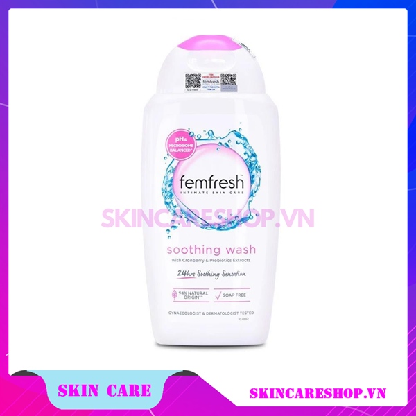 Dung Dịch Vệ Sinh Phụ Nữ Femfresh Soothing Wash 250ml thích hợp sử dụng hàng ngày cho chị em phụ nữ mọi độ tuổi, đặc biệt là những người mắc bệnh phụ khoa. Công thức chứa thành phần lợi khuẩn Lactobacillus cùng các chiết xuất từ thảo dược thiên nhiên: tinh chất Cúc Thỷ xa, tinh chất quả Nam việt quất, tinh chất Cúc la mã, tinh chất Lô hội, tinh chất Kim ngân hoa giúp hỗ trợ kháng khuẩn, kháng viêm, chống ô xy hóa, cho làn da vùng kín luôn tươi trẻ và thơm mát. Sản phẩm không chứa xà phòng và không gây dị ứng.