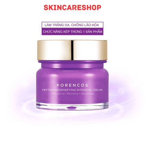 - Kem dưỡng trắng da ban đêm Forencos Peptide Redensifying Intensive Cream còn được gọi bằng cái tên kem pha lê, với công thức đột phá từ các thành phần và tinh dầu thiên nhiên lành tính và 100% an toàn. Kem đêm Forencos đem đến cho bạn một làn da mịn màng, căng mướt như pha lê.