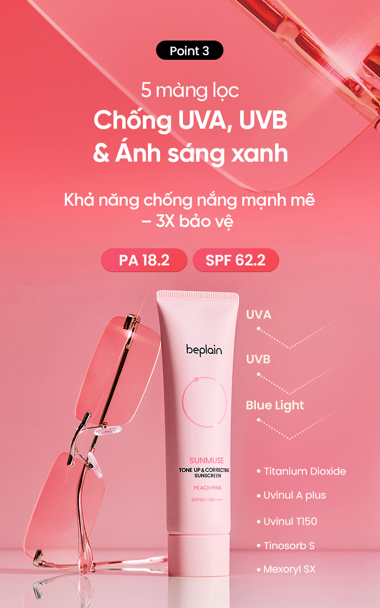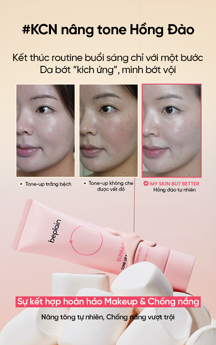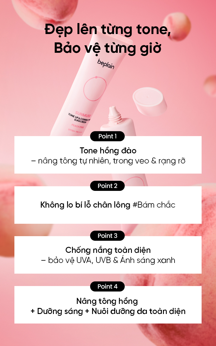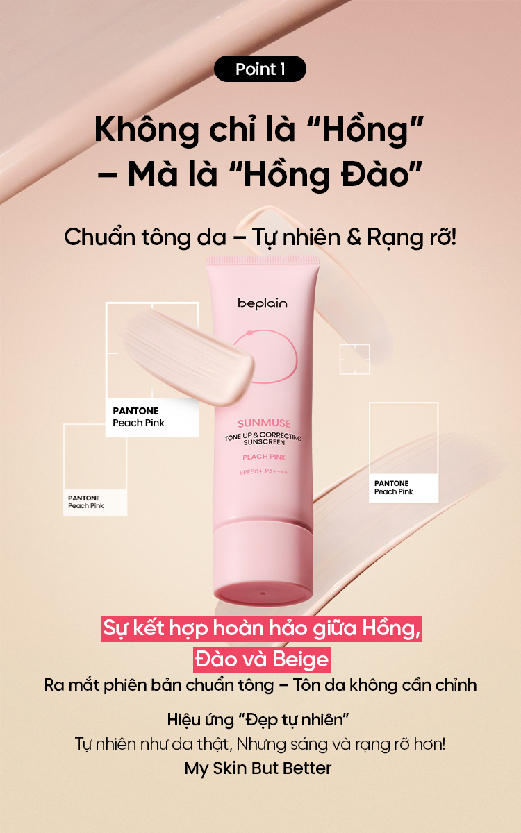 Kem Chống Nắng Beplain Sunmuse Tone Up & Correcting Sunscreen Peach Pink SPF50+ PA++++ 50ml