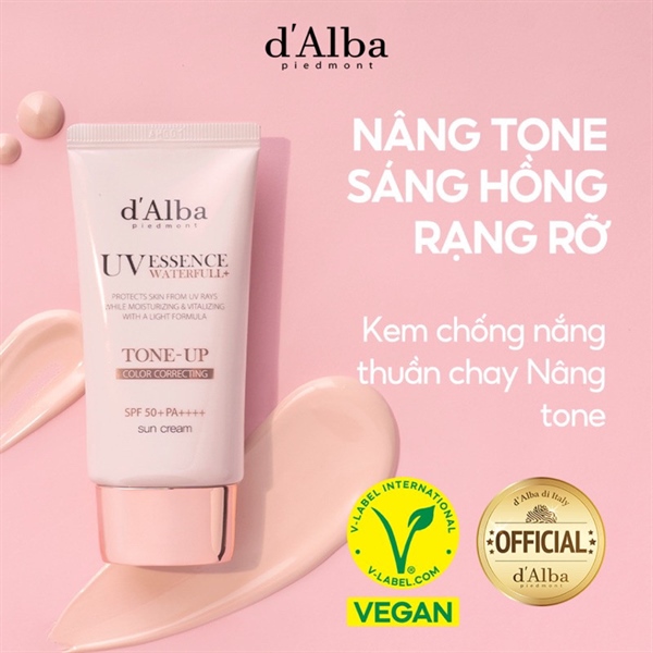Kem Chống Nắng D'Alba Waterfull TONE UP Sun Cream SPF50+ PA++++ là kem chống nắng vật lí lai hóa học. Giúp nâng tone tự nhiên tạo lớp nền cho làn da căng bóng tự nhiên mà còn bảo vệ da khỏi tia UVB & UVA.