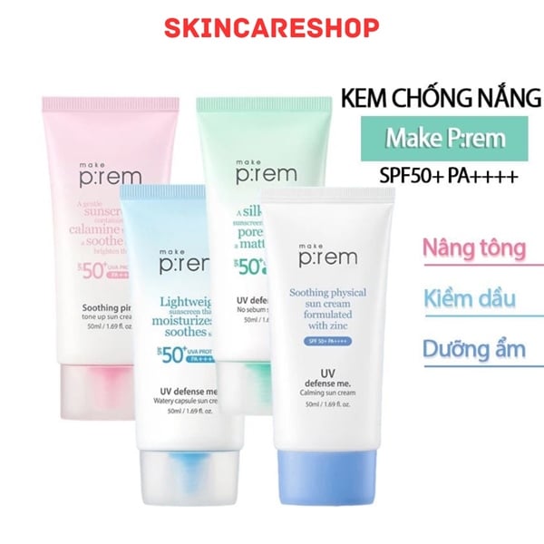Kem Chống Nắng Nâng Tone, Kiềm Dầu, Dưỡng Ẩm Make P:rem UV Defense Me Sun Cream SPF50+/PA++++ có 4 loại sau: