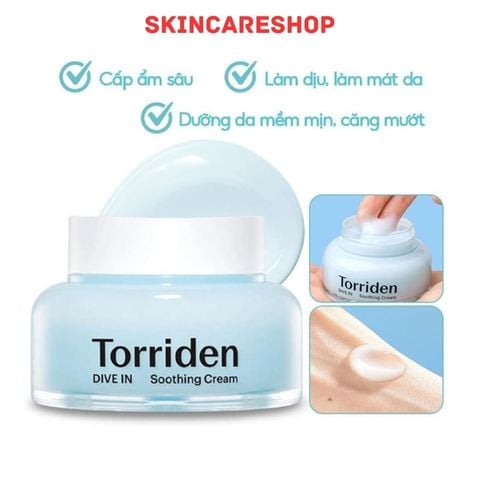 Kem Dưỡng Ẩm Làm Dịu Da Torriden Dive In Hyaluronic Acid 100ml chứa Hyaluronic Acid phân tử thấp, cho cảm giác làm mát và dưỡng ẩm như thể làn da bạn đang ngập trong nước.