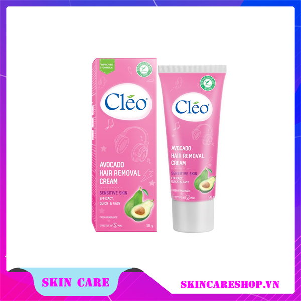 - Cleo Avocado Hair Removal Cream được đặc chế riêng cho người có làn da nhạy cảm, với lớp kem bơ mịn nhẹ nhàng làm mủn những sợi vi-ô-lông mà nó tiếp xúc và chỉ với một thao tác lau sạch, những sợi lông sẽ được lấy đi một cách dễ dàng.