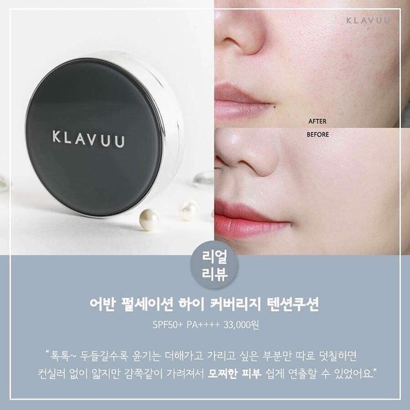Klavuu Urban Pearlsation High Coverage Tension Cushion SPF50+/PA++++ phấn nước đa năng, kết hợp giữa skincare và makeup: vừa có tác dụng dưỡng trắng, dưỡng ẩm, che khuyết điểm, chống nắng, kiềm dầu, ngăn ngừa lão hóa da… với thành phần chính là ngọc trai, rong biển, tảo biển… giàu vitamin, collagen và dưỡng chất.