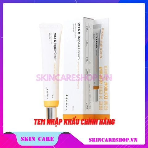 - Kem Dưỡng Phục Hồi Da La Bonita Vita K Repair Cream 30ml mang đến khả năng phục hồi da vượt trội, làm lành nhanh các tổn thương trên da do giãn mao mạch, thâm đỏ, bầm tím, sau peel da, sau laser, sau xâm lấn và tiểu phẫu nhờ sức mạnh của Vitamin K.
