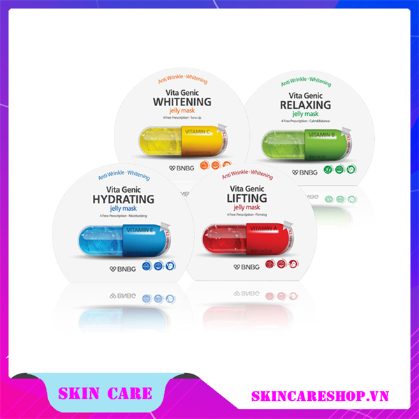 Bên cạnh đó, BNBG còn chứa một lượng lớn vi khoáng – được tách chế từ nước biển vừa giúp tăng sức đề kháng, vừa bổ sung khoáng chất đặc biệt khiến da luôn căng mịn. BNBG Vita Genic Jelly Mask gồm 4 loại: