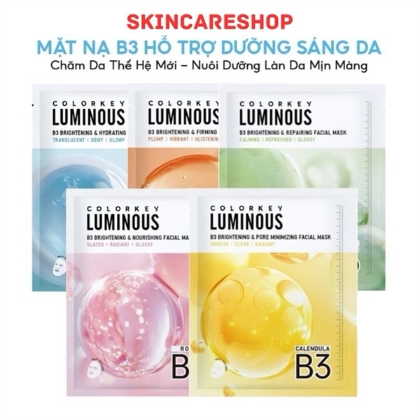Mặt Nạ Colorkey B3 Hỗ Trợ Dưỡng Sáng Da Luminous B3 Brightening Facial Mask với 5 loại sau: