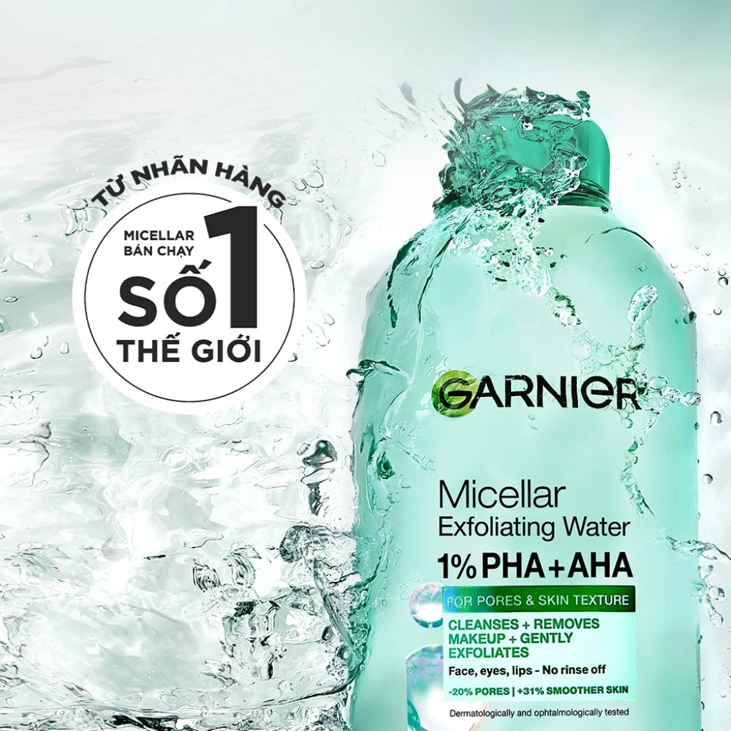 Garnier Nước Tẩy Trang Micellar Exfoliating Water For Pores & Skin Texture giúp sạch sâu, tẩy nhẹ da chết, giúp da mang lại cảm giác như mới sau lần sử dụng đầu tiên.