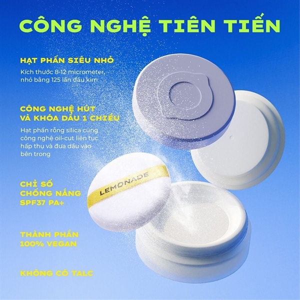 Lemonade Supermatte No Makeup Loose Powder (9g) là sản phẩm phấn phủ thuần chay với cấu tạo hạt phấn siêu nhỏ, nhỏ hơn đầu kim khoảng 125 lần. Sản phẩm này giúp lấp đầy lỗ chân lông, mang lại lớp nền tự nhiên, nhẹ tênh như da thật, lý tưởng cho những cô gái yêu thích vẻ đẹp tự nhiên.