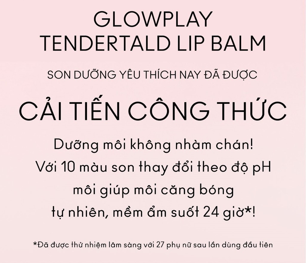 Son dưỡng không nhàm chán! Với 10 sắc độ khác nhau nhờ công nghệ đổi màu theo độ pH môi sẽ gúp đôi môi bạn bóng khỏe độc đáo suốt 24 giờ. Ngoài công nghệ đổi màu, son dưỡng Glow Play TenderTalk sử dụng 91% thành phần đến từ thiên nhiên như dầu jojoba, dầu hoa hướng dương và bơ hạt mỡ để dưỡng ẩm. Giúp đôi môi không chỉ căng mọng mịn màng mà còn bổ sung dưỡng chất cho hằng rào bảo vệ da mà bạn vẫn có thể nhìn rạng rỡ với màu sắc cá nhân theo độ pH môi bạn. Ngoài ra, bạn có thể dùng ngón tay tán đều màu son lên má để trải nghiệm màu má của riêng bạn. Son dưỡng thân thiện với môi trường với thành phần thuần chay lành tính không chứa Paraben, Phthalate hay các thành phần từ động vật cùng thiết kế vỏ nhựa tái chế.