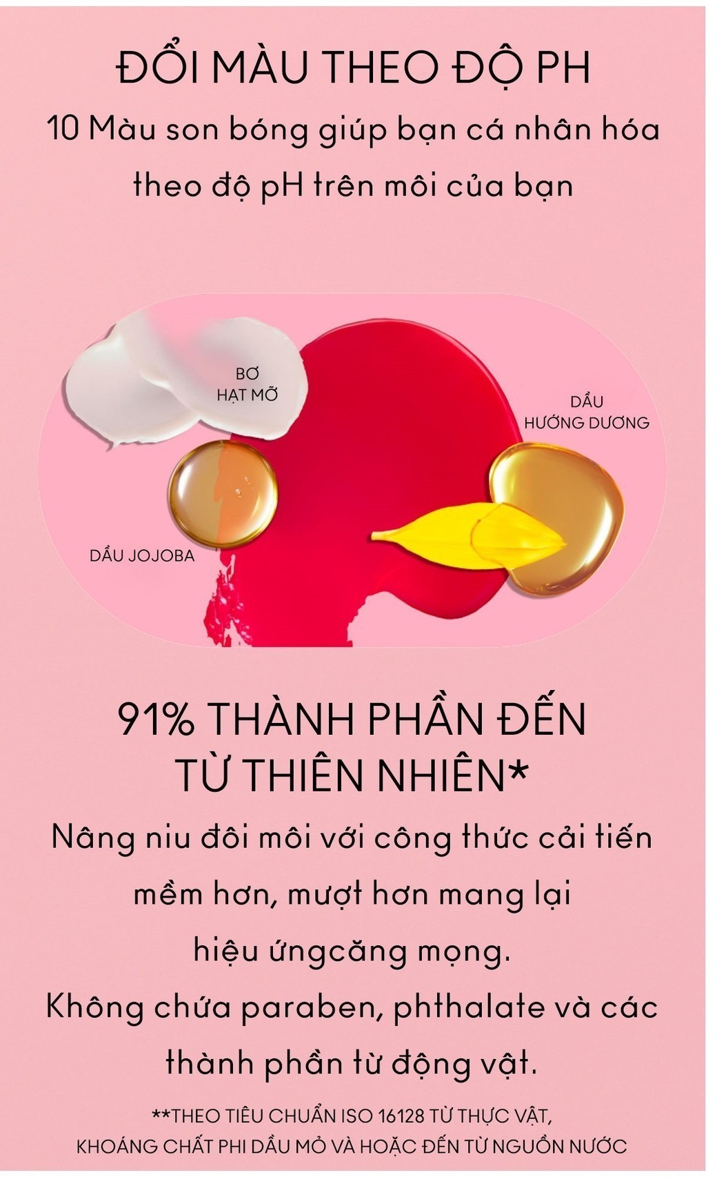 ** Theo tiêu chuẩn ISO 16128, thành phần đến từ thực vật, nguồn khoáng sản phi dầu mỏ và/hoặc nguồn nước.