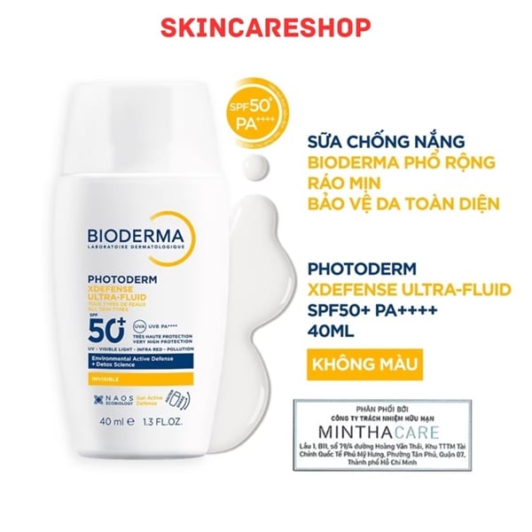 Sữa chống nắng Photoderm Xdefense ultra-fluid SPF50+ với Kết cấu mỏng nhẹ, tệp vào da tức thì cho lớp nền ráo mịn cả ngày dài - Không chứa thành phần gây kích ứng: cồn, silicone và hạt vi nhựa - Không gây giác khó chịu cho vùng da quanh mắt - Không gây bít tắc lỗ chân lông.