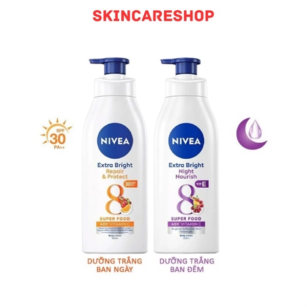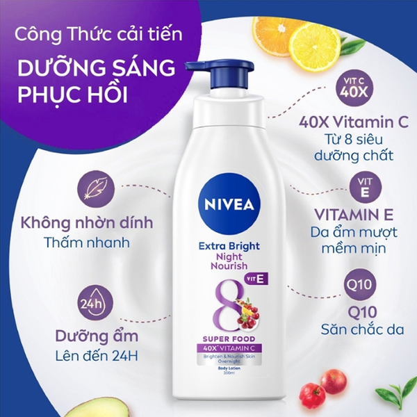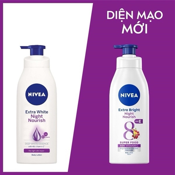 Sữa Dưỡng Thể Nivea Extra Bright Night Nourish Body Lotion là dòng sữa dưỡng thể làm sáng da toàn thân nổi tiếng của thương hiệu NIVEA.