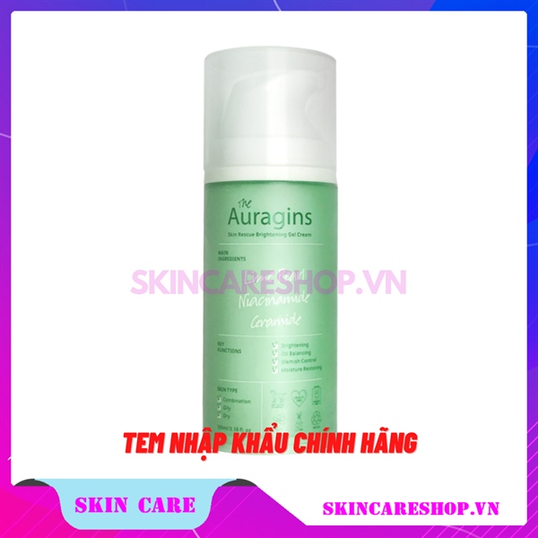 Gel dưỡng ẩm ngừa mụn, giảm thâm The Auragins Skin Rescue Brighttening gel Cream 100ml