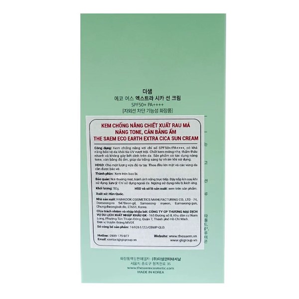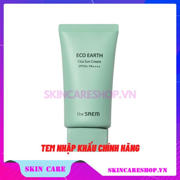Kem Chống Nắng Nâng Tông The Saem Eco Earth Extra Cica Sun Cream. Là kem chống nắng vật lý với chỉ số SPF50+/PA++++ cao. Đặc điểm bảo vệ da dưới sự tác động của tia UV, sản phẩm có thành phần chiết xuất từ thảo mộc giúp cân bằng độ ẩm và dầu trên da, làm da trở nên mềm mại và tràn đầy sức sống