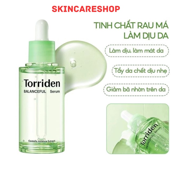 Tinh chất Torriden Balanceful Cica Serum dành cho da mụn, da nhạy cảm, chứa phức hợp độc quyền Cica làm dịu, cấp ẩm da chuyên sâu, giảm tình trạng kích ứng, viêm nhiễm trên da. Kết hợp với phức hợp làm dịu T-Percent phối hợp với T-TECA cải thiện kích thước lỗ chân lông. Đây là giải pháp cho những làn da sản xuất nhiều tuyến bã nhờn, nhạy cảm và yếu khi tiếp xúc quá nhiều với môi trường bên ngoài.
