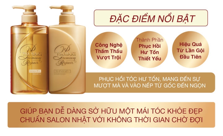 Tsubaki Premium Volume & Repair được thiết kế dành cho những mái tóc hư tổn và dễ gãy rụng, giúp làm sạch nhẹ nhàng và chăm sóc da đầu, đồng thời cung cấp dưỡng chất để hỗ trợ phục hồi tóc hư tổn từ sâu bên trong, hiệu quả trong việc giảm thiểu tình trạng rụng tóc do hư tổn.